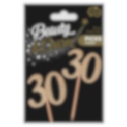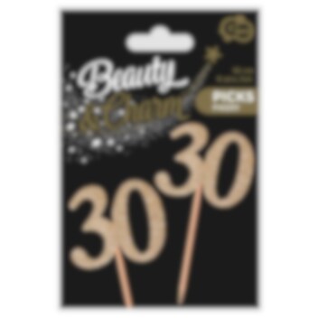 6 guldglitrende kage dekorationer til at dekorere bagværk til 30-års jubilæet. Længde ca. 10 cm.