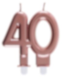 Kagelys i rosaguld elegant formet som tallet 40. Kagelyset har en størrelse på 7,5 x 9 cm.