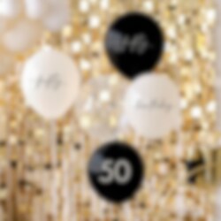 1 x 30 cm sort ballon med teksten ''Fifty''