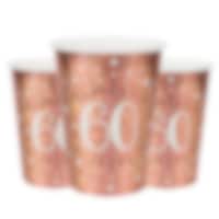 6 stk. smukke og praktiske engangschampagneglas. Disse plastglas er ideelle til at dække op til en 60-års jubilæumsfest, både til borddækning og til at mingle med dine gæster. Glassene har en kapacitet på 14 cl, står på en fod i rosaguld og er prydet med tallet "60" øverst.