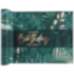 Smuk bordløber med lækre motiver af frodigt løv og med teksten "Happy Birthday to you!" langs midten. Dæk bordet smukt med dette til en fødselsdag med jungletema.