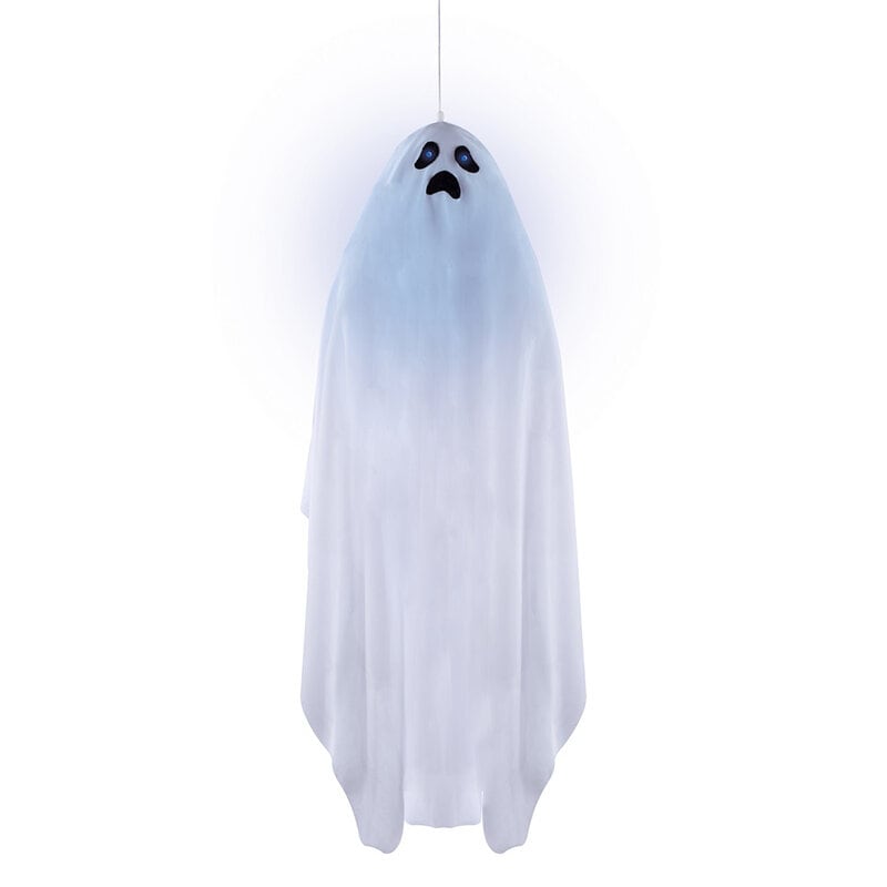 Sejt spøgelse, der lyser i hovedet, når dekorationen aktiveres. En festlig genstand til Halloween-festen. Spøgelset er 90 cm højt og leveres med indbyggede batterier.