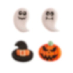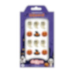 Pynt dine kager med disse charmerende sukkerdekorationer i Halloween-tema. I hver pakke får du 12 dekorationer med motiver af græskar, spøgelser og heksehatte.