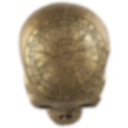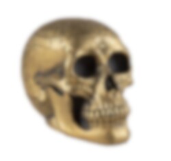 Denne skræmmende gulddødningehoved er 20 cm og bliver en uhyggelig detalje under Halloween. Med sin skinnende gyldne finish og detaljerede design skaber den en uhyggelig atmosfære. Placer den på bordet eller hylden for at give dit hjem en autentisk Halloween-følelse.