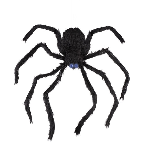 Sort edderkop, der går op og ned langs en tråd, blinker med øjnene og giver en skræmmende og skræppende lyd når den er aktiveret. Skræm dine venner med denne, når det er tid til en Halloweenfest.