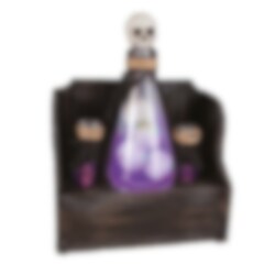 Sej animeret Halloweendekoration, der forestiller en hylde fyldt med uhyggelige troldedrikke, skeletter og øjne. En imponerende detalje til din Halloweenfejring.