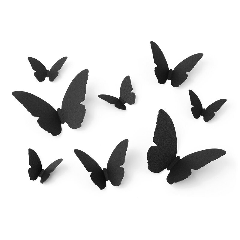 30 stk. dekorative sorte sommerfugle, som du kan sætte på væggene for at få den rigtige stemning til Halloween-fejringen. Sommerfuglene er lavet af papir og kommer i størrelser fra 6 til 12 cm. I pakken er der også 30 stk. limprikker.