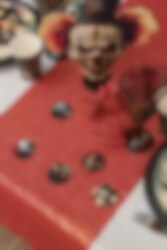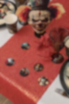 Luksuriøs trækonfetti med motiver af grimme klovne, perfekt til at give borddækningen et ekstra uhyggeligt præg til Halloween. Konfettien er 5 cm i diameter og der er 10 stk i hver pakke. Perfekt som borddekoration til at skabe en virkelig skræmmende atmosfære.