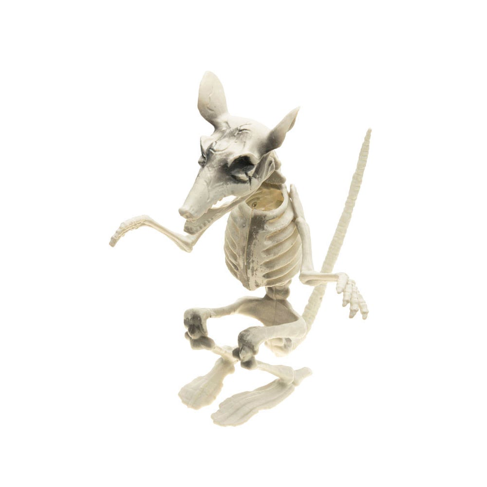 Giv din Halloween-dekoration en virkelig uhyggelig touch med dette detaljerede rotteskelet! Perfekt til placering både indendørs og udendørs for at skabe en skræmmende atmosfære, når Halloween nærmer sig. Rotteskelettet er 26 cm højt og fremstillet af holdbar plast.