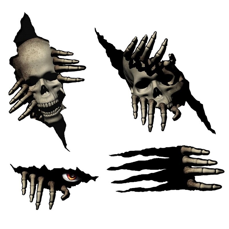 4 stk. vægklistermærker med skræmmende skeletmotiver, der giver en illusion af, at de prøver at komme ud af væggen. Perfekt til at skabe en skræmmende atmosfære til Halloween!