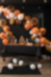 Denne stilfulde ballonbue montere du selv sammen før din Halloween-fejring. Med sine fine farver og seje design bliver den fremtrædende dekoration at have mod en væg eller over en indgang. Ballonbuen tager lidt tid at sætte sammen, men slutresultatet vil være værd den tid.
