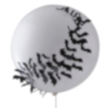 En imponerende hvid ballon, der dekoreres med sorte flagermus i pap i forskellige størrelser for en flot 3D-effekt. En iøjnefaldende dekoration til Halloweenfesten, som med garanti vil vække opmærksomhed.