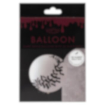 Pakken indeholder: 1 hvid ballon (60 cm), 60 sorte flagermus i pap, 2 meter sort tråd og 80 klæbepuder til at fastgøre flagermusene.