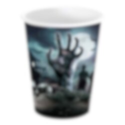 6 papkrus i et uhyggeligt kirkegårdstema, perfekt til Halloween-fester. Krusene er ca. 9 cm høje og har et rumindhold på 240 ml.