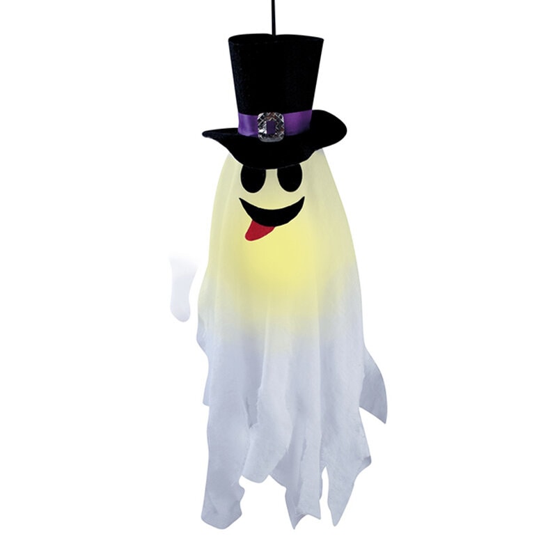 Sejt lysende spøgelse med en sort hat, som vil være en fantastisk dekoration at tage frem, når Halloween nærmer sig. Spøgelset er 50 cm højt og har et indbygget batteri.