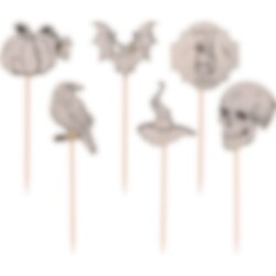 Giv dine cupcakes og bagværk et uhyggeligt luksuriøst præg med Creepy Curiosities partypicks! Sættet indeholder seks forskellige motiver, blandt andet flagermus, dødningehoved og heksehat, trykt på pap med elegante gulddetaljer som gør hver kage til et højdepunkt til halloween.
