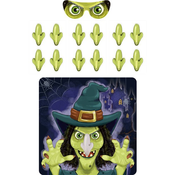 Et klassisk og sjovt Halloween-spil for både børn og voksne. Prøv at sætte heksens næse på det rigtige sted mens du har bind for øjnene. Grin og sjov er garanteret. Den, der kommer tættest på, vinder. Spillet kan spilles af 2-12 deltagere.