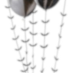 5 stk. seje sorte ballonhaler med motiver af flagermus. Ballonhalerne er lavet af sort garn, har 13 papflagermus og er 1 meter lange.