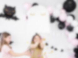 Piñata, der forestiller et sødt spøgelse med guldfolierede øjne. En perfekt afslutning på Halloweenfesten. Fyld piñataen med slik og nogle skræmmende overraskelser, og lad børnene trække i strengene eller slå til piñataen, for at få fat på slikket. Spøgelset er ca. 41,5 x 50 x 10 cm i størrelse og sælges tomt.