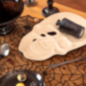 Server snacks eller slik med stil til halloween med dette snackfad formet som et dødningehoved. Den knoglehvide farve og de udskårne detaljer giver et effektfuldt look på bordet, uanset om du serverer chips eller småkager. En genanvendelig dekoration, der passer perfekt til halloweenfesten!