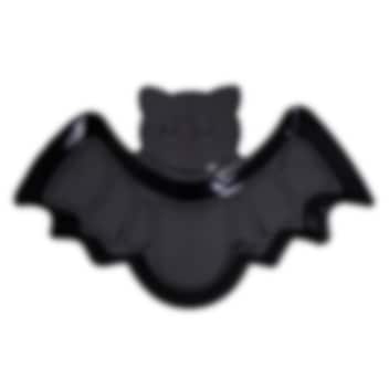 Server snacks eller slik på uhyggelig vis til halloween med dette flagermusformede snackfad i sort plast. Perfekt til småkager, bær eller søde sager på buffetbordet. Kan genbruges år efter år som en stemningsfuld detalje i borddækningen.