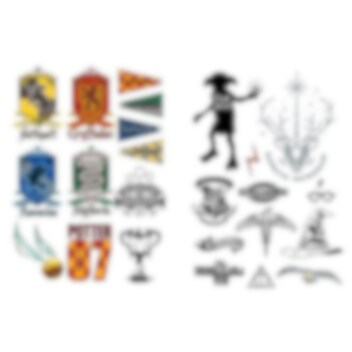 4 ark med seje tatoveringer med motiv fra Harry Potter. Sjov tilføjelse til slikposen. Pakken inkluderer 35 stk. tatoveringer.