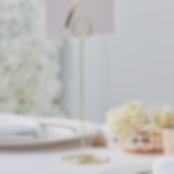 Flot guldfarvet kortholder fra temaet Gold Wedding. Perfekt til at holde pladskort eller bordnumre. Kortholderen er 22 cm høj. Pris refererer til 1 stk.