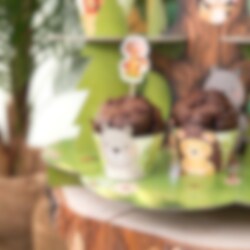 Skab en magisk følelse med denne vidunderlige muffinstativ, der forestiller et træ i skoven, dekoreret med charmerende små skovdyr både på forsiden og bagsiden. Det passer blandt andet perfekt til en fødselsdag med skovdyrstema og er fremstillet af stabil pap med en størrelse på 40 x 32 cm.
