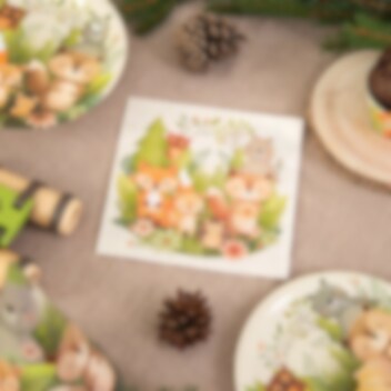 10 stk. charmerende servietter med motiv af skovens sødeste dyr. Servietterne har 3 lag og er 33 x 33 cm store, når de er udfoldede. Takket være deres charmerende design og adgang til mange matchende tilbehør, passer disse servietter godt til både 1-årsfødselsdag, fødselsdage med skovtema, barnedåb eller babyshower.