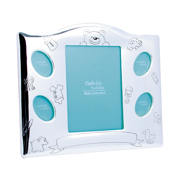 Fotoramme i krom med søde børnemotiver. En vidunderlig dåbsgave, som forældre kan bruge til at bevare minder fra barnets første år i. Fotorammen er ca. 22 x 18 cm i størrelse.