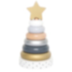 Legetøj der kan stables fra Jabadabado i smukke farver og med en stjerne på toppen. Dette klassiske legetøj fungerer perfekt som dåbsgave, da det er sjovt at lege med, mens det udvikler barnets finmotoriske evner. Ringene er lette at gribe fat i og er lavet af træ. Legetøjet er ca. 18 cm højt.