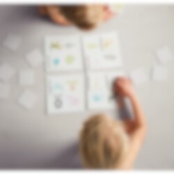 Sjovt vendespil med et dejligt dyretema, for 2-4 spillere, der også kan spilles med de mindre børn. En sjov gave til babyen. I dette spil får hver deltager et spillebræt med forskellige farverige dyr. Spillerne skal derefter vende brikker og prøve at matche motiverne fra spillebrættet. Den, der først fylder sit bræt med matchende kort, vinder spillet. Spillebrættene er ca. 4 x 20 x 20 cm store og er lavet af hård pap.