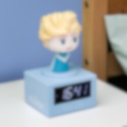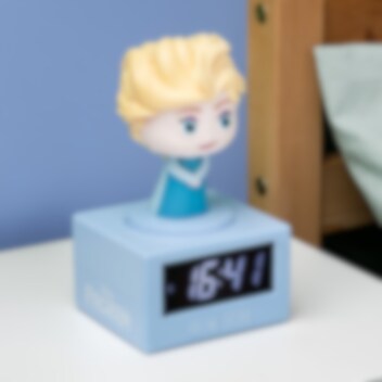 Vågn op til tonerne fra Frost-filmen med dette magiske Elsa-vækkeur! Uret er 17 cm højt og har både lyd- og lysfunktion, Elsa lyser op i et blødt skær, mens der spilles musik fra filmen, når alarmen går.