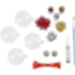 Indhold: Juletræskugle, palietter, lim, pensler og bånd.