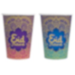 8 stk. papkrus, der sætter guldkant på din Eid-borddækning! Med sit elegante design i blåt, lilla og guld bliver de et stilfuldt indslag til festen. Perfekte til både varme og kolde drikke. Krusene er cirka 10 cm høje og rummer 210 ml.