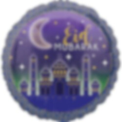 Se vores fine folieballon med Eid Mubarak-motiv! Ballonen er omkring 43 cm når den er oppustet og kan pustes op med helium eller luft. Ballonen har en selvlukkende ventil og for at puste den op med normal luft skal du bruge en ballonpumpe, alternativt et sugerør.