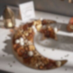 Et serveringsfad i guldfolie med en halvmåne og en stjerne fra den fine Eid Mubarak-kollektion.
