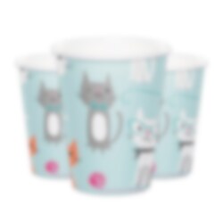 8 stk. papkrus med et motiv af søde katte og en mintgrøn baggrund. Krusene er ca. 10 cm høje og kan rumme ca. 266 ml.