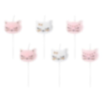 6 flotte kagelys med det motiv af 3 forskellige søde katte i farverne lyserød og hvid. Pynt din kage med disse når det er tid til at holde fest. Passer perfekt til festen med kattetema. Lysene er ca. 5 cm høje.