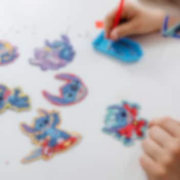 Disney Stitch, diamond dotz magneter, er et kreativt og sjovt håndværkssæt til børn, der elsker Disney! Med dette sæt kan børnene skabe deres egne fine motiver af Stitch ved at fastgøre de glitrende "diamanter" i forskellige farver på de medfølgende magneter.