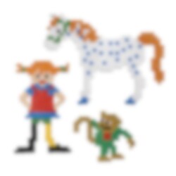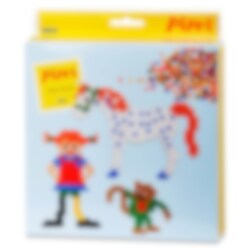 Tilføj og skab smukke motiver af Pippi, Lillemand og Hr. Nilsson. Indeholder 2000 perler, 2 store plader og farvekort med mønster.