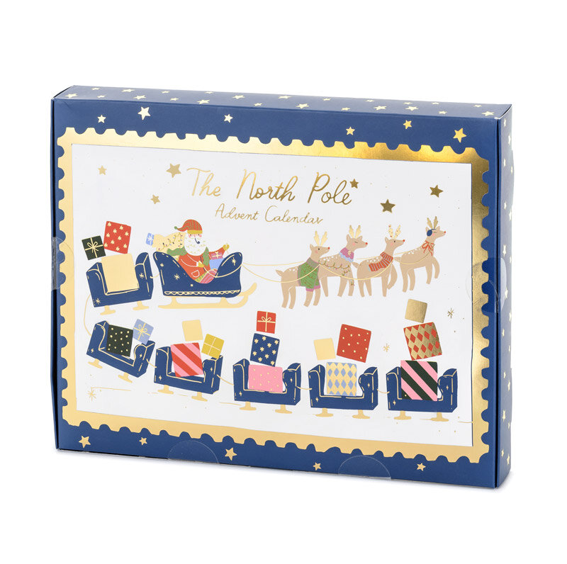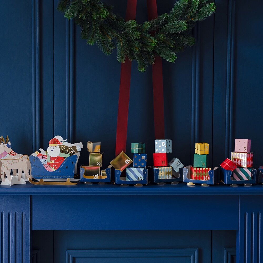 En sjov DIY-adventskalender lavet af pap med julemandens slæde med rensdyr og alle de fine pakker, han uddeler. Fyld dem med små overraskelser, og lad børnene åbne en æske hver dag indtil jul. Pakken indeholder. 1 slæde med julemanden i 6 stk. Slæder 4 stk. Rensdyr 8 stk. Pakke 5 x 5 cm 8 stk. Pakke 4,5 x 4,5 cm 7 stk. Pakke 3,5 x 3,5 cm