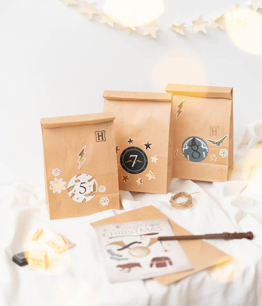 Denne gør-det-selv-kalender i Harry Potter vil være et højdepunkt for enhver person, der elsker Harry Potter. Fyld poserne med sjove små overraskelser, og hæng dem så op i snoren. Dette sæt kan også bruges som gaveposer til fiskedammen til Harry Potter-temafester, hvis du ønsker det.