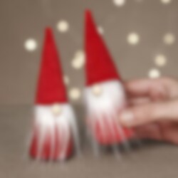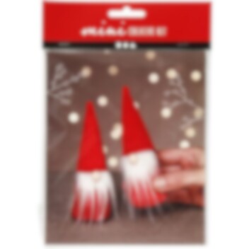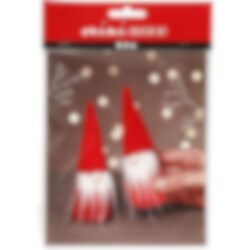 Gør-det-selv håndværkssæt til 2 stk. søde små julemænd med langt skæg og velour hætte og krop. Nisserne er omkring 12 cm høje. Indeholder: Udstanset rød velour, skæg, træperler, polyesterfyld, plastikkugler og tråd. Beskrivelse medfølger. Størrelsen angiver målene på det færdige produkt.