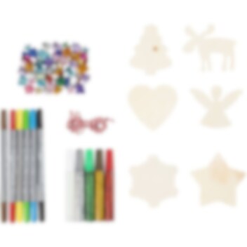 Med dette kit kan børnene dekorere deres egne juletræsornamenter i træ. Det indeholder al materiale og alle instruktioner, du har brug for.