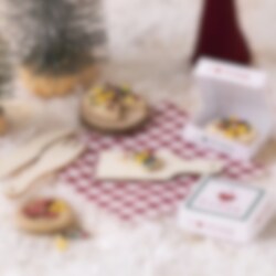 Indhold: Silk Clay®, trækøkkenredskaber, træskiver, stof, pizzaæske skabelon og dobbeltklæbende tape.
