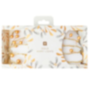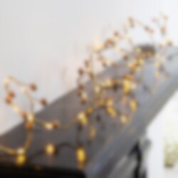 Disse små LED-lys på en lyskæde med guldbær er den perfekte dekoration for tilføje lidt varme og elegance til dit julebord, pejsen, gelænderet eller i en glaskrukke som pynt på bordet!