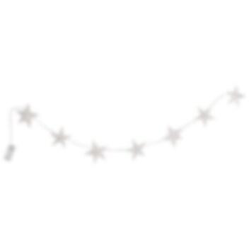 Skab en magisk julestemning med vores LED-lyskæder pyntet med hvide stjerner i pap. Denne lyskæde er perfekt til at give et varmt og indbydende skær, hvor du end vælger at placere den. Lyskæden er 150 cm lang og drives med 2 x AA-batterier (inkluderet ej).