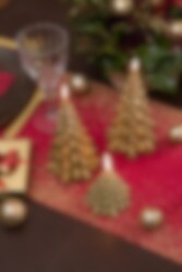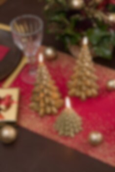 Elegant stearinlys formet som et juletræ i guld. Med sin højde på 8 cm er dette lys den perfekte dekoration til at skabe en hyggelig og festlig atmosfære til jul. Kombiner med andre farver og størrelser og få en vidunderlig lille lysende juletræsskov.