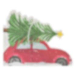 16 flotte juleservietter formet som en rød bil med et juletræ på bilens tag. Servietterne er ca. 17 x 15,5 cm.